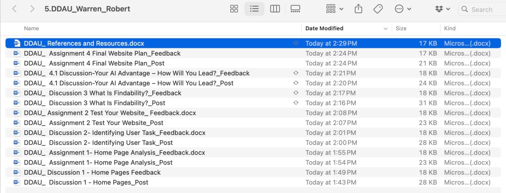 Navigation is such crucial to findability. It is not just any SEO anymore. Findability is a team effort and this class allowed me to understand how each individual element can play a role in findability. An example is even if a consumer finds your website if they cannot find the services they may leave the page. Seeing the different views: desktop, minimized tab and desktop each played a part as well.